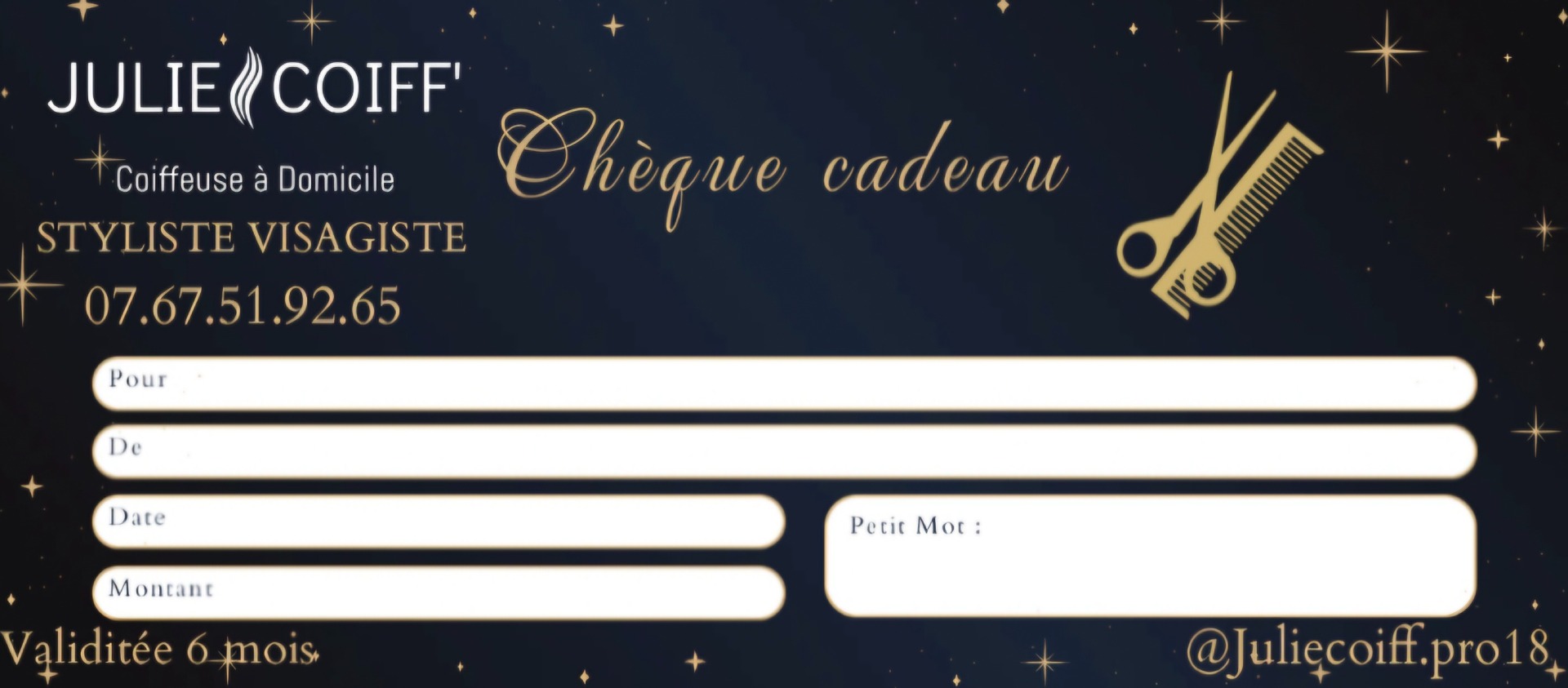 JULIE COIFF' vous propose de magnifiques Chèques Cadeaux à offrir.