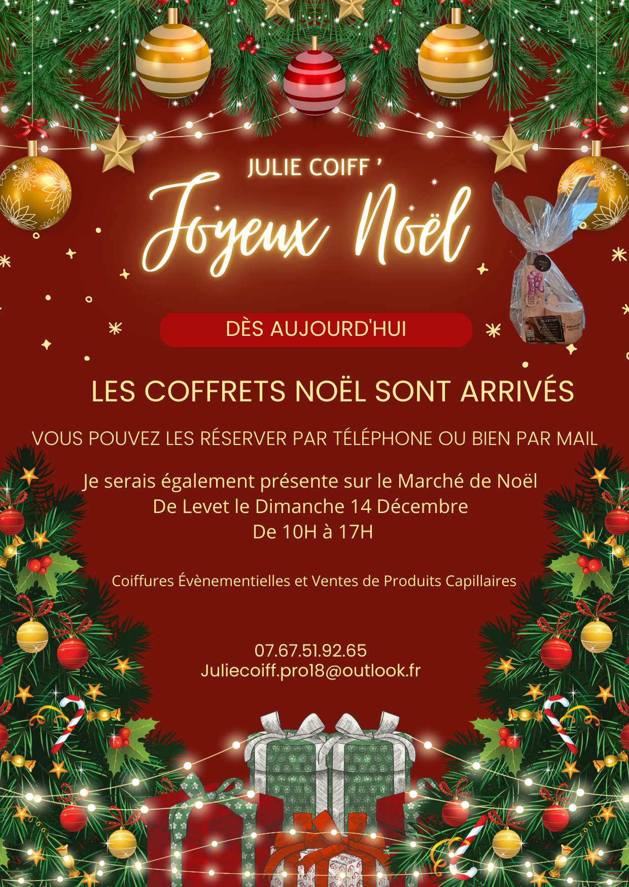JULIE COIFF' vous accueille au Marché de Noël de Levet, le Dimanche 14 Décembre, de 10H à 17H.