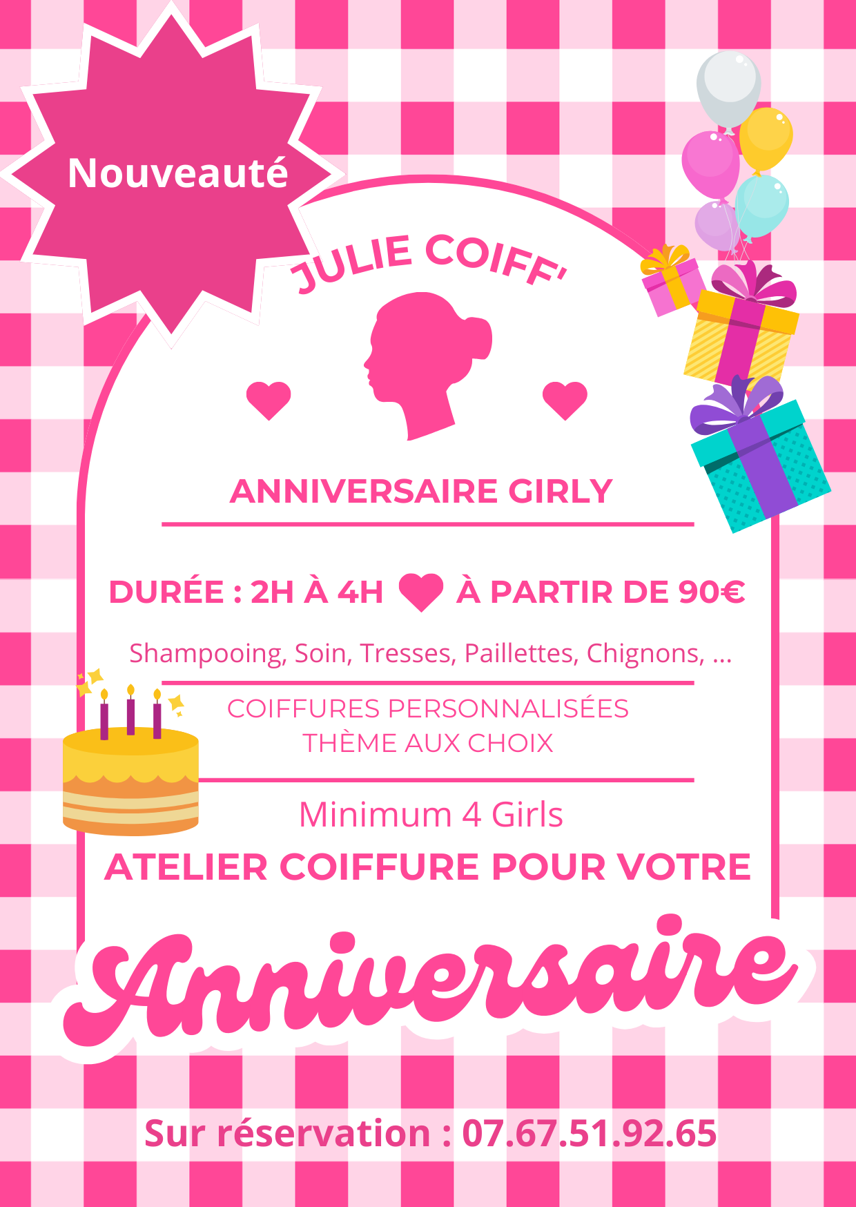 Un Atelier Girly est proposé par votre coiffeuse, envie d'animer votre anniversaire entre filles, ou pour l'anniversaire de votre fille.
